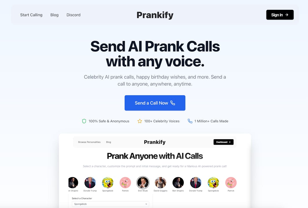 Prankify AI - Create a persona and run AI-powered prank calls for fun