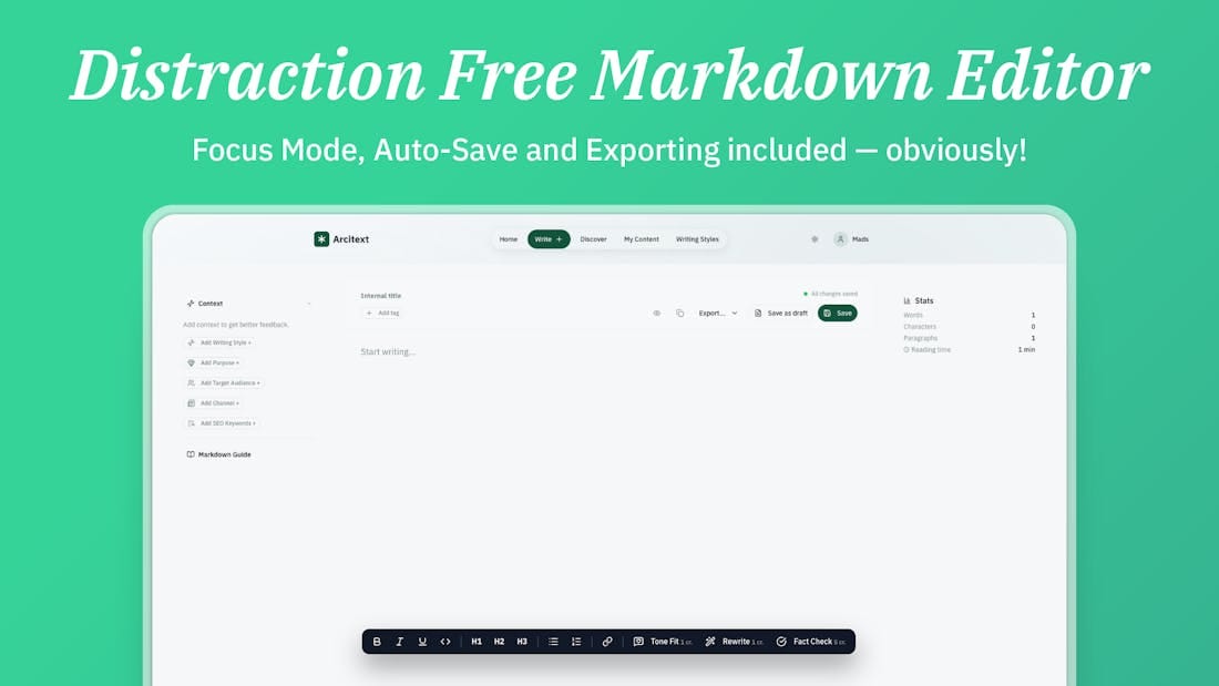 Arcitext.com - Write in your voice. Perfect it with AI.