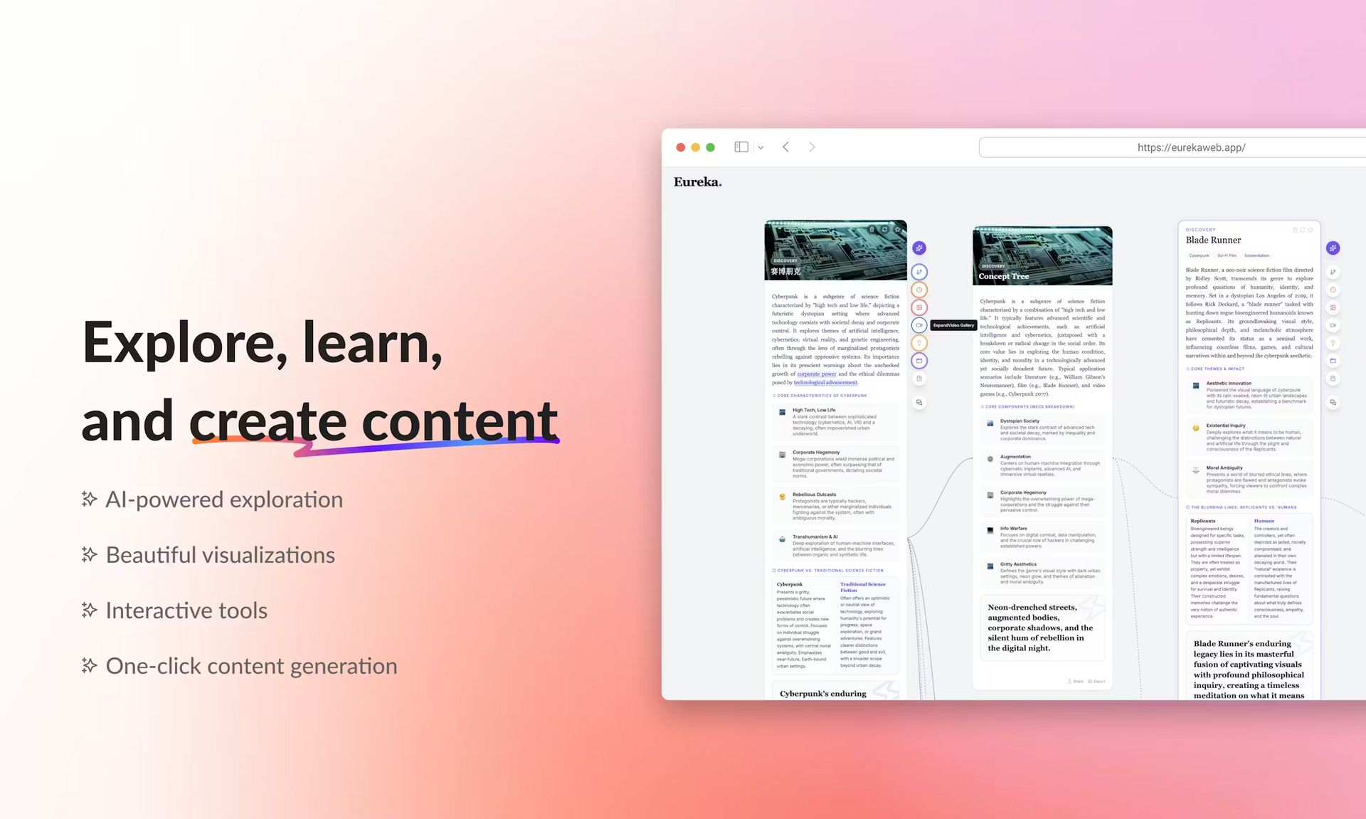 Eureka - Turn any knowledge into an explorable visual map, AI-powered