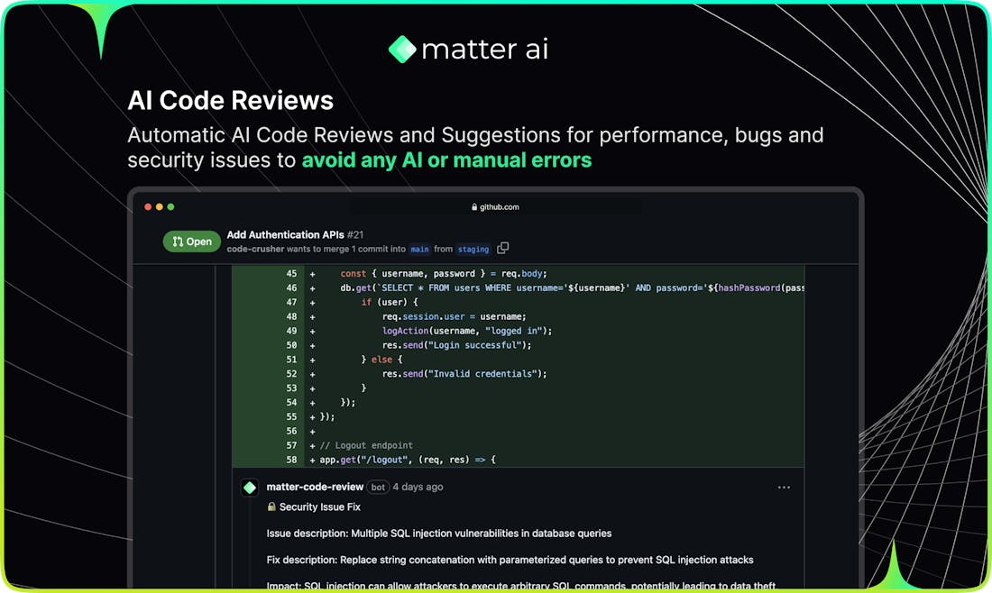 Matter AI - AI Code reviewer to fix bugs, security & performance issues